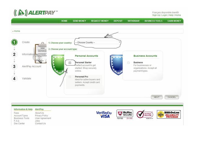 работы вам подойдёт аккаунт Personal Starter. Переходим на сайт AlertPay и нажимаем